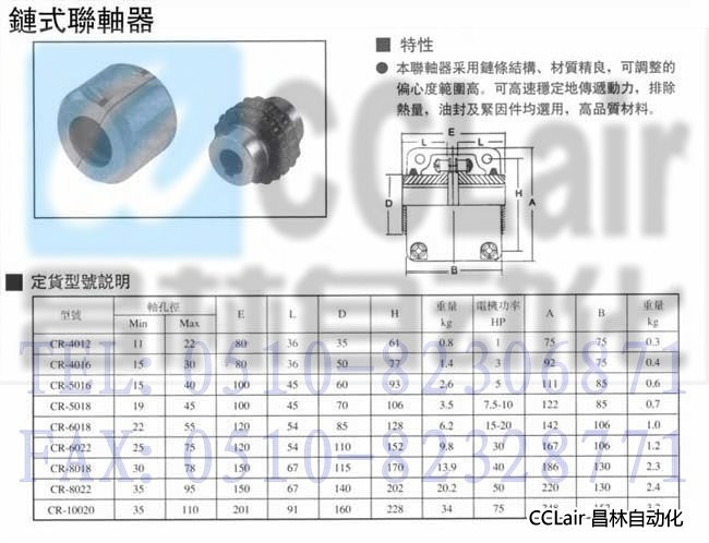CR-4012,CR-4016,CR-5016,CR-5018,CR-6018,鏈式聯軸器 ,