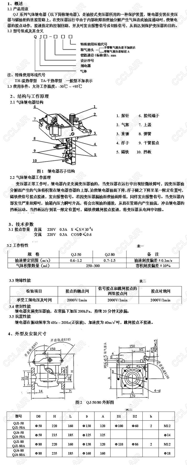 QJ1-50,QJ1-50A,QJ4-50,QJ4-50A,QJ1-80,QJ1-80A,QJ4-80,QJ4-80A,QJ4-25,變壓器氣體繼電器