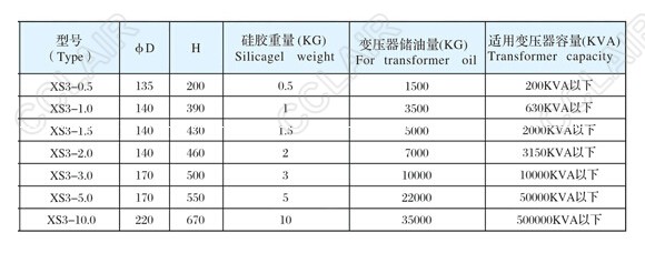 吸濕器按硅膠可分為白色硅膠吸濕器和變色硅膠吸濕器;按功能可分為普通(或單吸)吸濕器和雙呼吸吸濕器。 吸濕器硅膠顏色為:白色、藍(lán)色兩種型號(hào): 0.1kg 、 0.2kg 、 0.5kg 、 1kg 、 2kg 、 3kg 、 5kg 、8kg、 10kg 技術(shù)參數(shù):