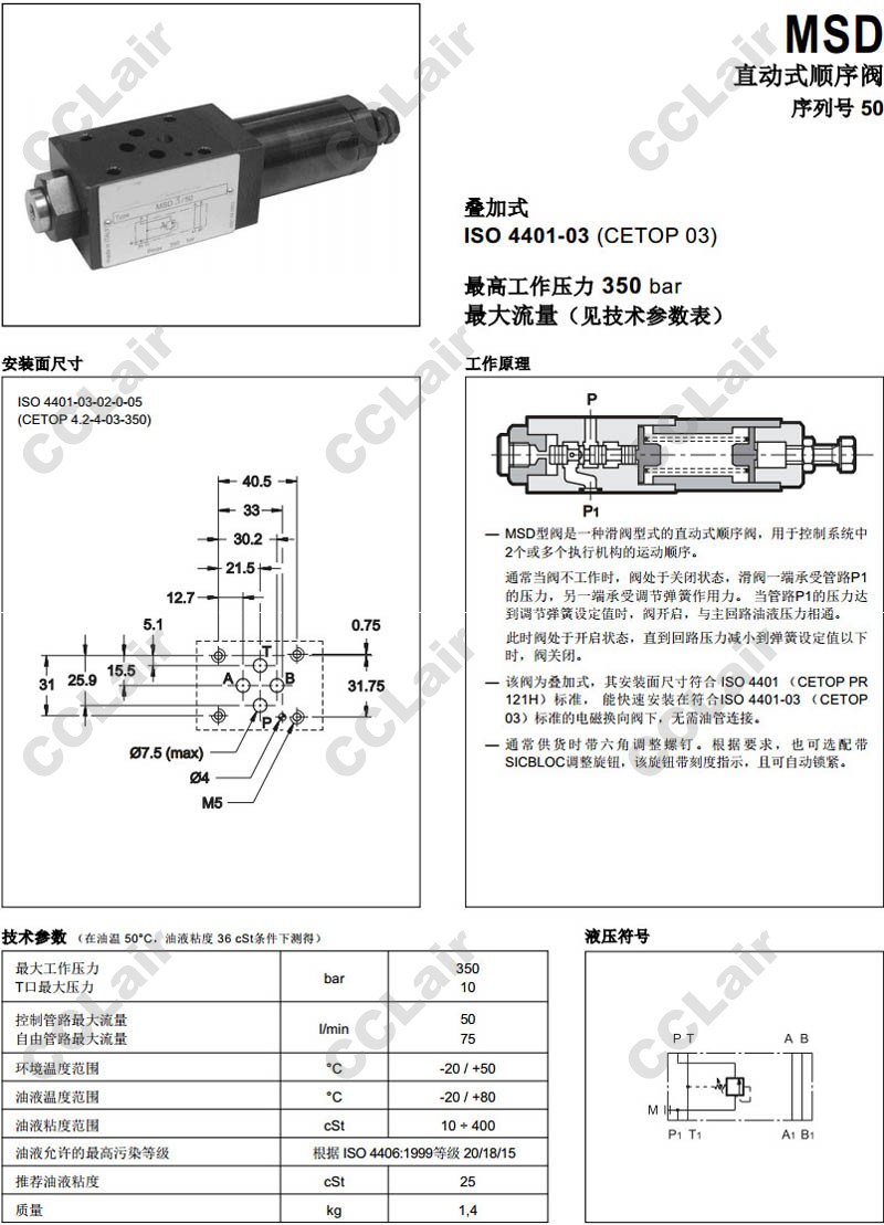 DUPLOMATIC(迪普馬),MSD3/M/50,MSD4/M/50,MSD5/M/50,MSD3/M/50/V,MSD4/M/50/V,MSD5/M/50/V,直動式順序閥