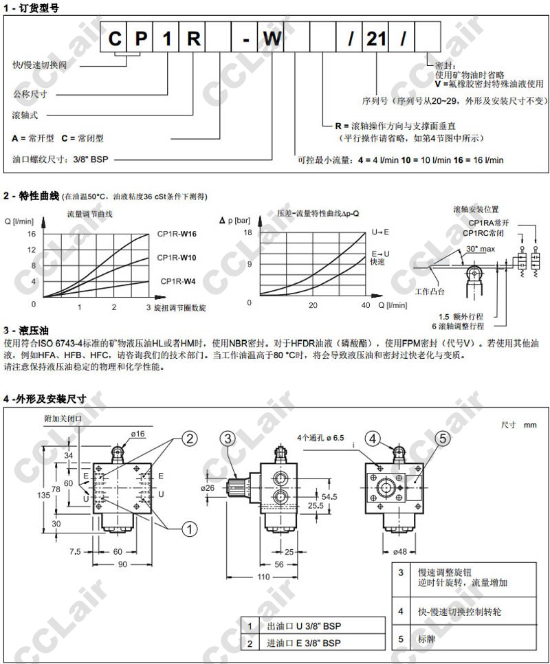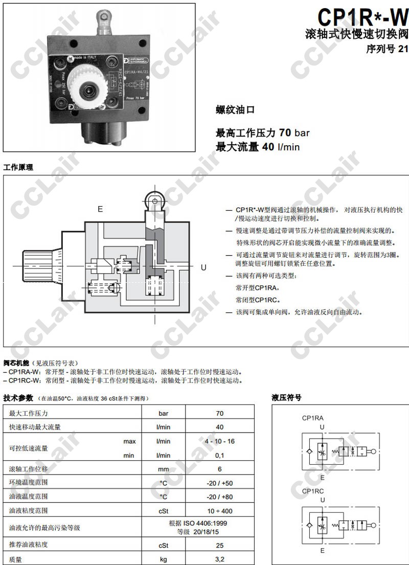 詳細信息 CP1RA-W4R/21,CP1RC-W4R/21,CP1RA-W10R/21,CP1RC-W10R/21,CP1RA-W16R/21,CP1RC-W16R/21,CP1RA-W4R/21/V,滾軸式快慢速切換閥
