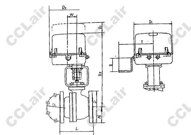 PN64電動O型切斷球閥外形尺寸 mm