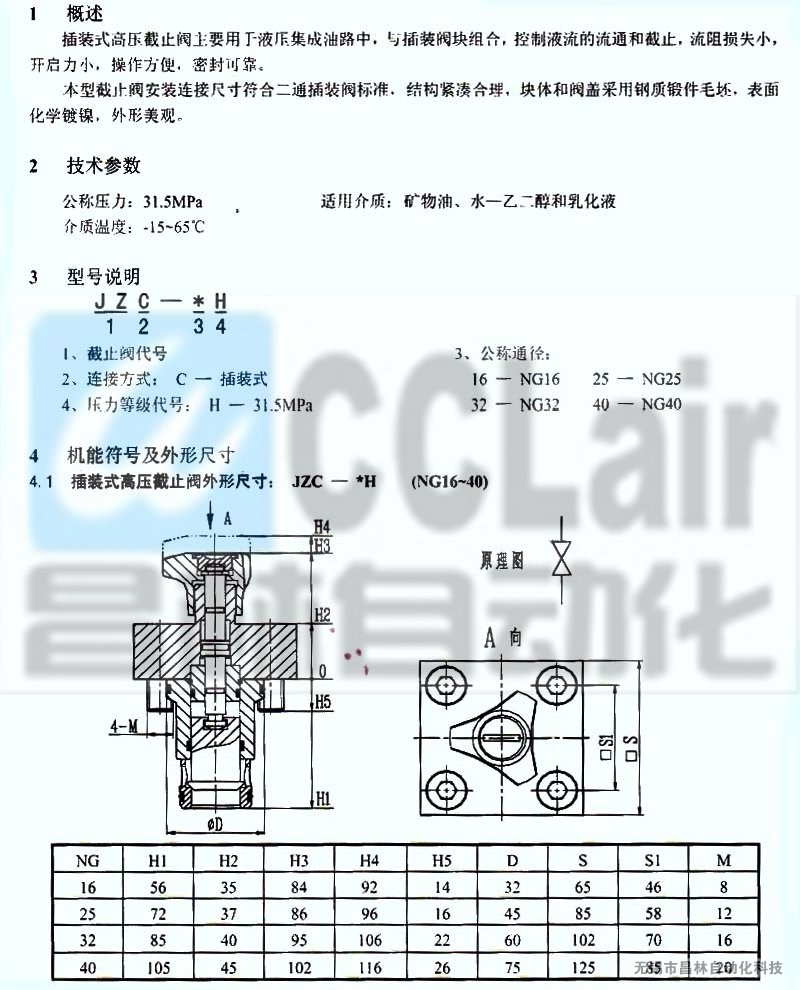 JZC-16H,JZC-25H,JZC-32H,JZC-40H,插裝式高壓截止閥