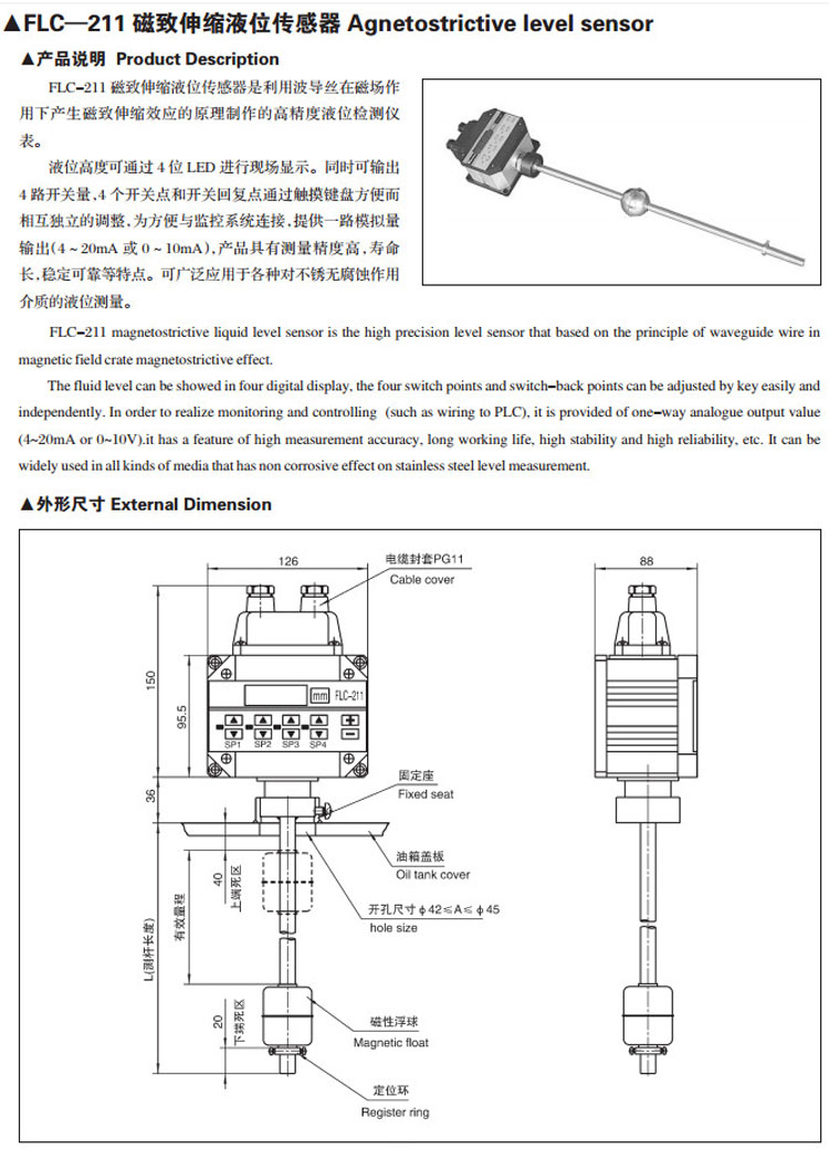 FLC-211,磁致伸縮液位傳感器