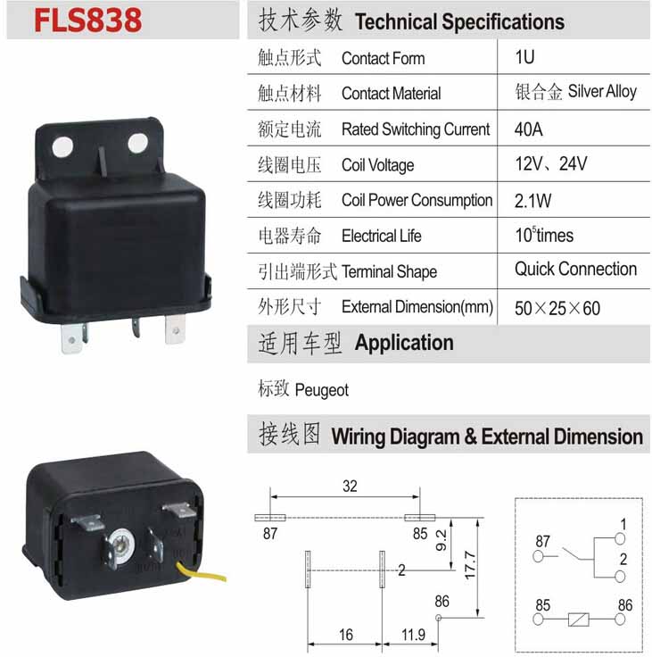 詳細(xì)信息 FLS838,汽車(chē)?yán)^電器