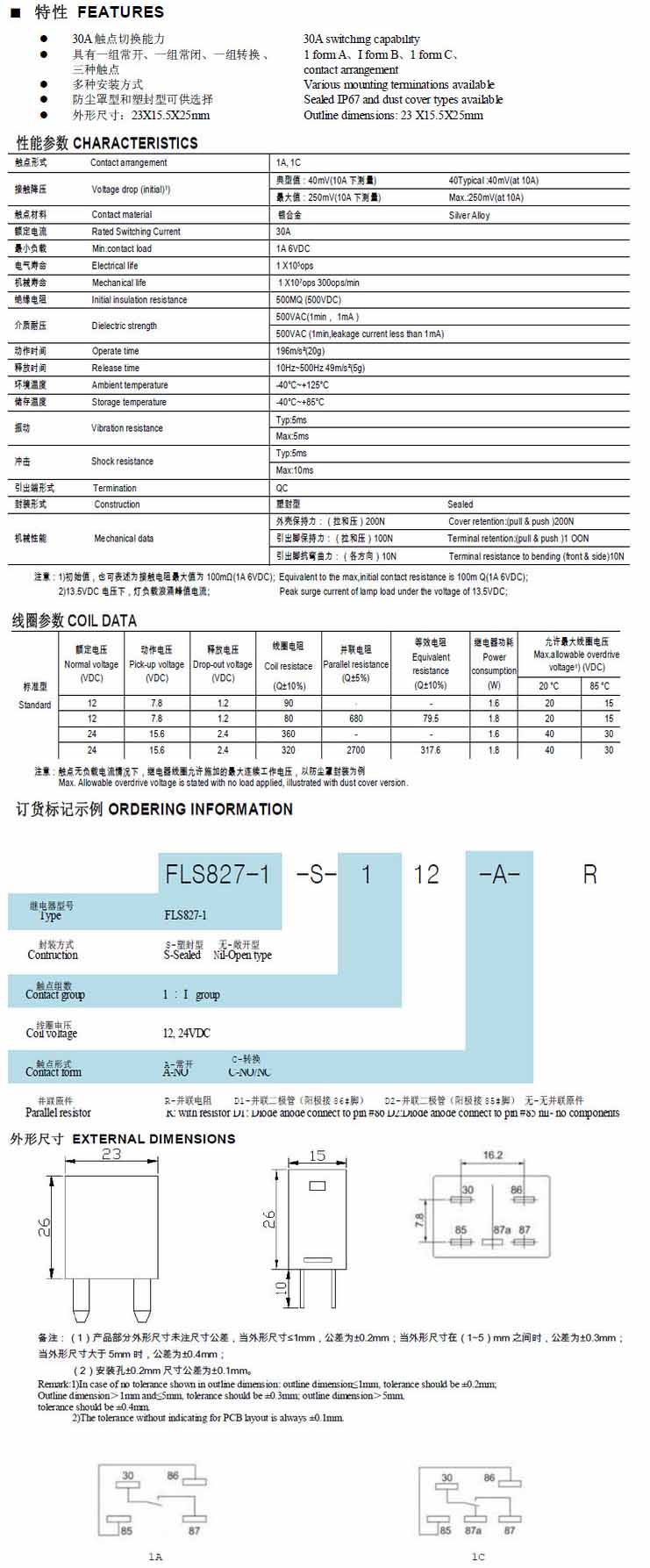 FLS827-1,汽車?yán)^電器