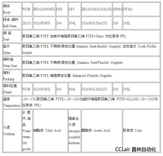 四、不銹鋼氧氣球閥主要零件材料及性能: