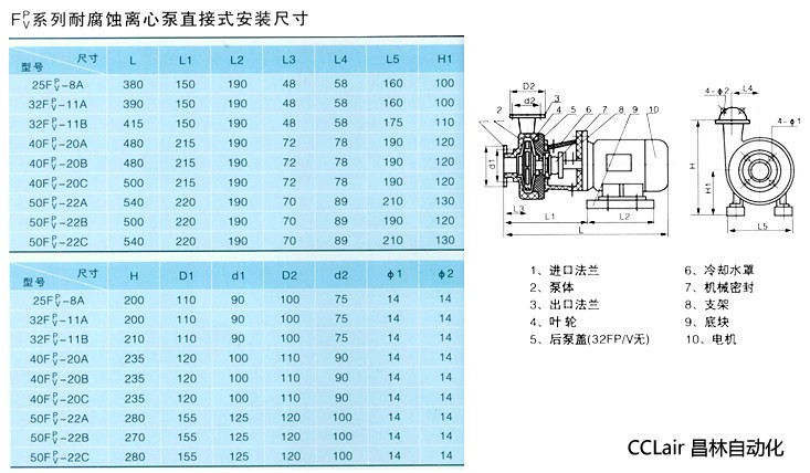 詳細(xì)信息 50FP-22A,50FP-22B,50FP-22C,40FP-20C,耐腐蝕離心泵(直接式),