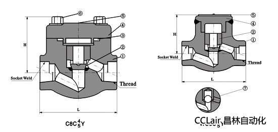 鍛鋼止回閥有三種閥蓋設(shè)計(jì)形式.第一種是設(shè)計(jì)形式是焊接式閥蓋,按這種設(shè)計(jì)形式的閥門(mén),其閥體與閥蓋用螺紋連接,全焊密封.客戶(hù)有特殊要求時(shí)也可采用透焊連接.第二種是螺栓式閥蓋,按這種設(shè)計(jì)形式設(shè)計(jì)的閥門(mén),其閥體與閥蓋用螺栓螺母連接,纏繞式墊片(316夾柔性石墨制造)密封.客戶(hù)有特殊要求時(shí)也可采用金屬環(huán)連接.第三種是壓力自緊式閥蓋,按這種設(shè)計(jì)形式設(shè)計(jì)的閥門(mén),其閥體與閥蓋用螺紋連接,內(nèi)壓自密環(huán)密封.