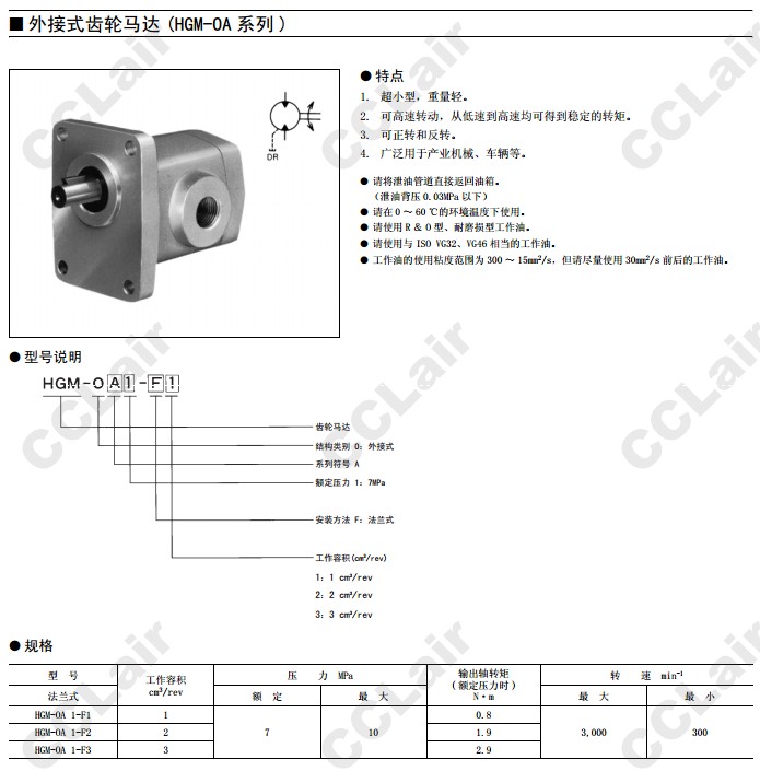 HGM-OA1-F1,HGM-OA1-F2,HGM-OA1-F3,外接式齒輪馬達(dá)