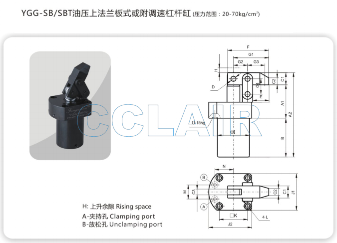 YGG-SB25,YGG-SB32,YGG-SBT40,YGG-SBT50,YGG-SBT63,油壓上法蘭板式或附調(diào)速杠桿缸