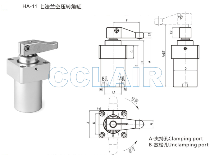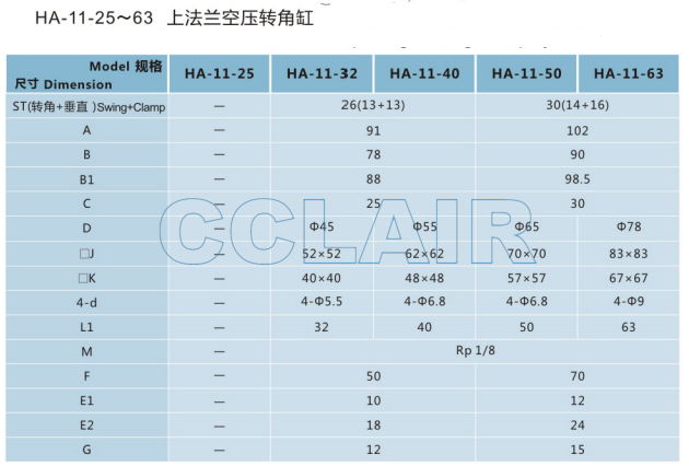 HA-11-25,HA-11-32,HA-11-40,HA-11-50,HA-11-63,上法蘭空壓轉(zhuǎn)角缸
