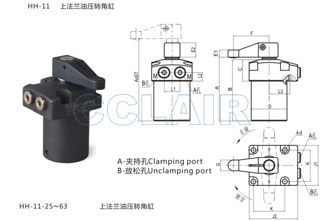 HH-11-25,HH-11-32,HH-11-40,HH-11-50,HH-11-63,上法蘭油壓轉(zhuǎn)角缸