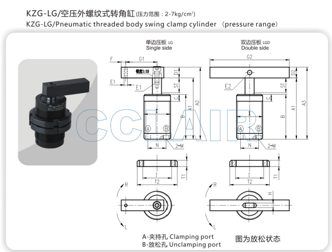 詳細(xì)信息 KZG-LG32,KZG-LG40,KZG-LG50,空壓外螺紋式轉(zhuǎn)角缸,無錫昌林