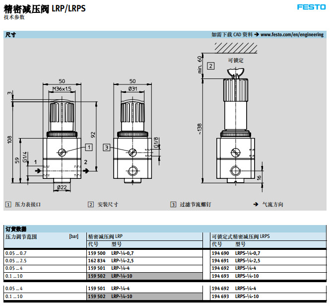 詳細(xì)信息 LRP-1/4-0.7,LRP-1/4-2.5,LRPS-1/4-4,LRPS-1/4-10,festo精密減壓閥