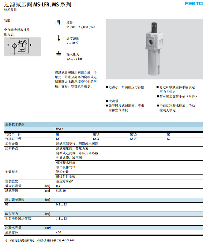 MS12-LFR-G-D7-CUY-AS-LD,MS12-LFR-G-D7-EUY-AS-LD,festo過濾減壓閥