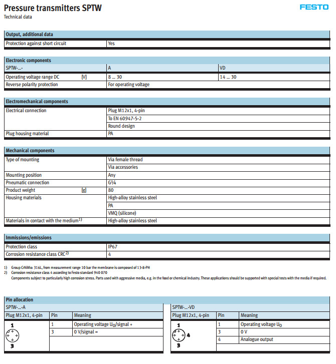 SPTW-B2R-G14-A-M12,SPTW-B11R-G14-A-M12,SPTW-P2R-G14-A-M12,festo壓力傳感器 |