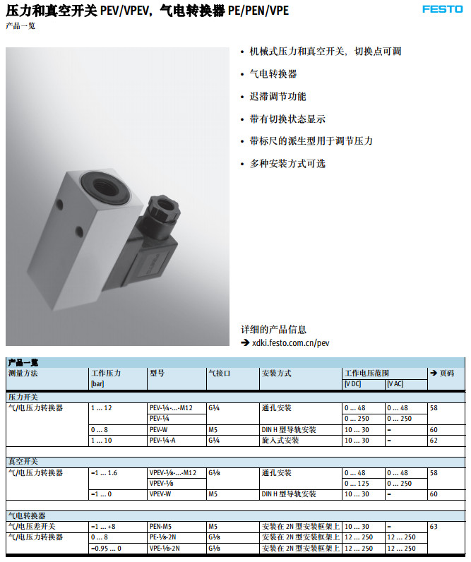 詳細信息 PEV-W-KL-LED-GH,VPEV-W-KL-LED-GH,PEV-W-S-LED-GH,VPEV-W-S-LED-GH,festo壓力開關(guān)