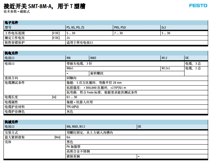 SMT-8M-A-PS-24V-E,SMT-8M-A-PO-24V-E,SMT-8M-A-NS-24V-E,festo接近開(kāi)關(guān)
