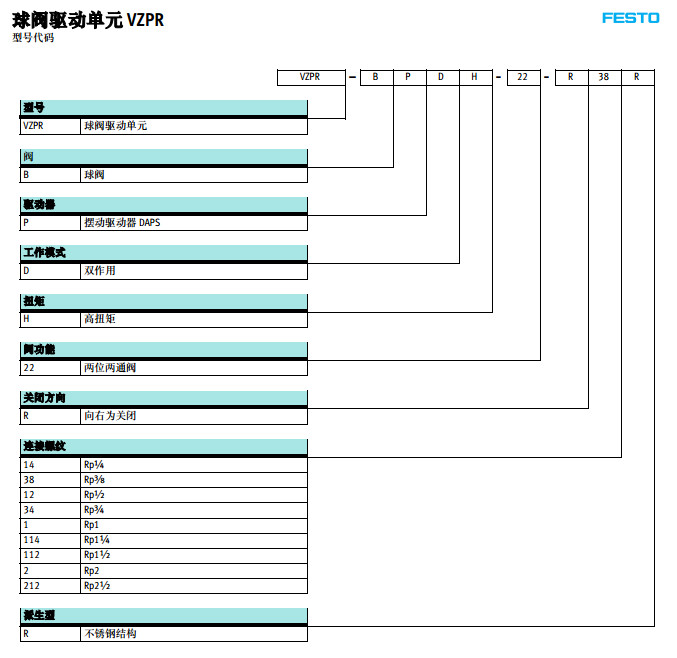 VZPR-BPDH-22-R14R,VZPR-BPDH-22-R38R,VZPR-BPDH-22-R12R,festo球閥驅(qū)動單元