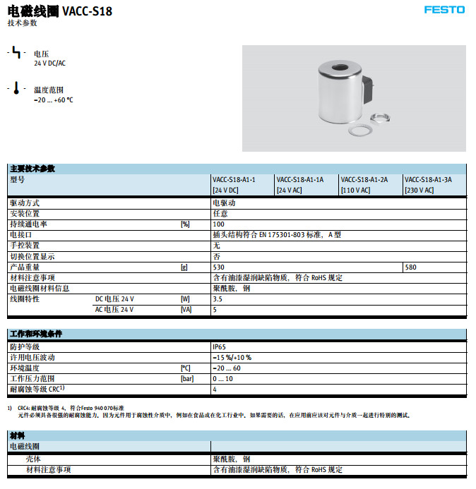 詳細(xì)信息 VACC-S18-A1-1,VACC-S18-A1-2A,VACC-S18-A1-3A,VACC-S18-A1-1A,festo電磁線圈