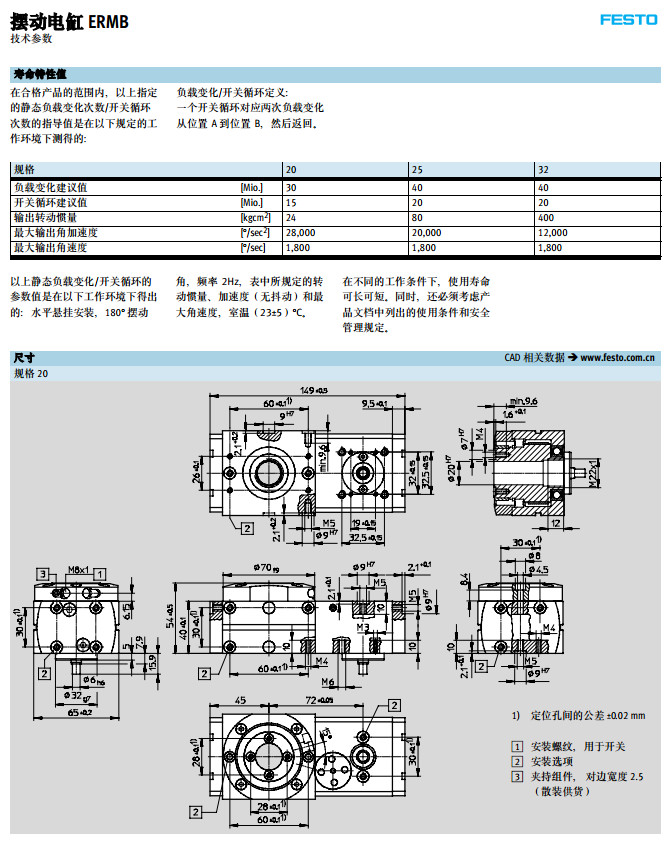 ERMB-20,ERMB-25,ERMB-32,festo擺動(dòng)電缸