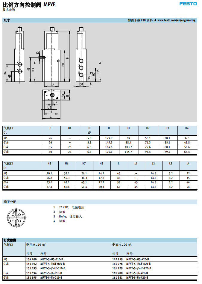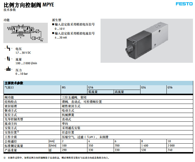 MPYE-5-M5,MPYE-5-1/8LF,MPYE-5-1/4,MPYE-5-3/8,festo比例方向控制閥