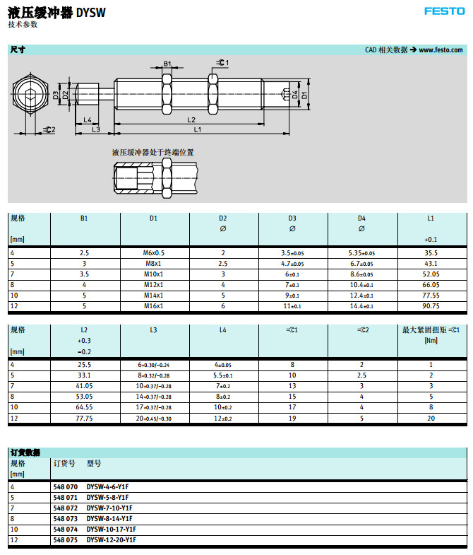 詳細(xì)信息 DYSW-4,DYSW-5,DYSW-7,DYSW-8,DYSW-10,DYSW-12,festo液壓緩沖器