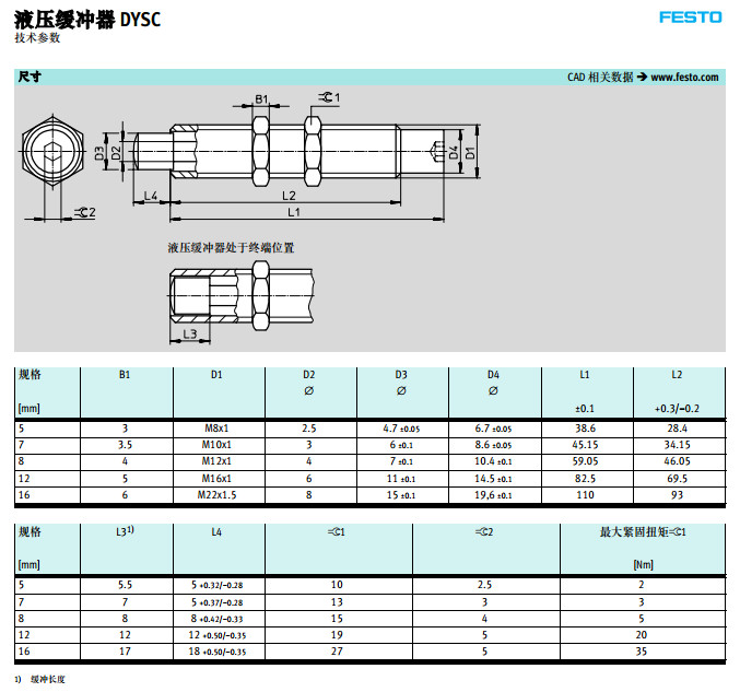 DYSC-5-5,DYSC-7-5,DYSC-8-8,DYSC-12-12,DYSC-16-18,festo液壓緩沖器