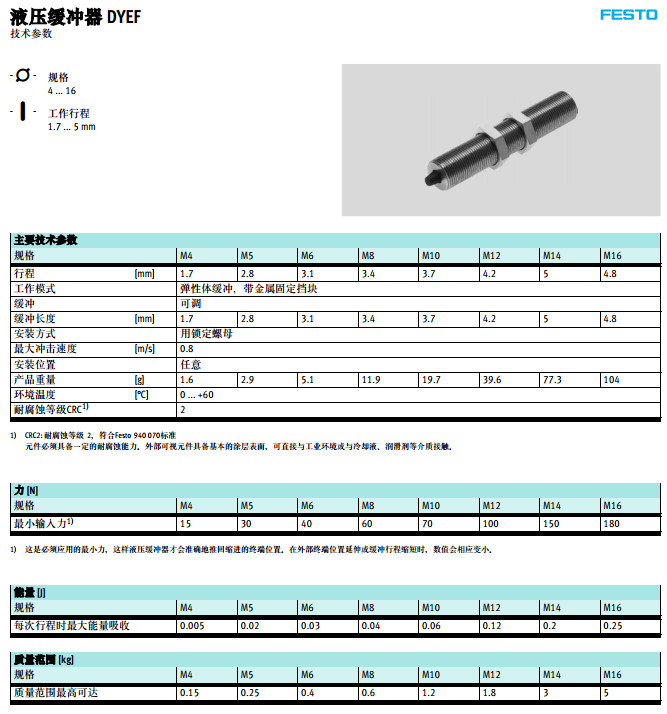 DYEF-M4,DYEF-M5,DYEF-M6,DYEF-M8,DYEF-M10,festo液壓緩沖器