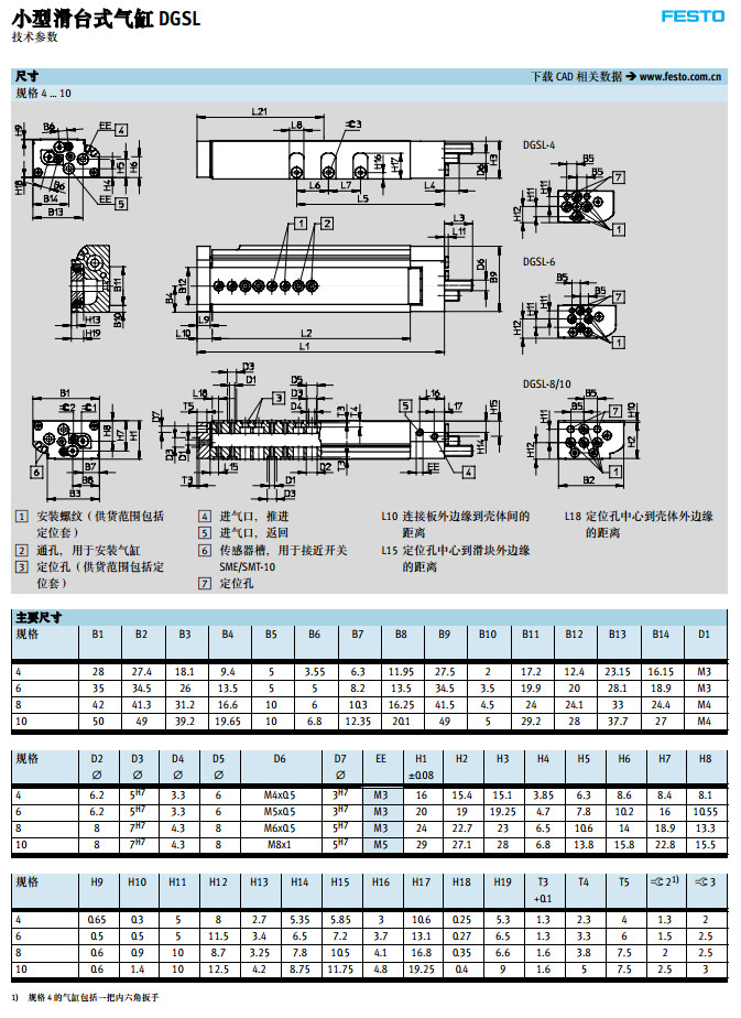 DGSL-4,DGSL-6,DGSL-8,DGSL-10,DGSL-20,DGSL-25,festo小型滑臺(tái)式氣缸 |