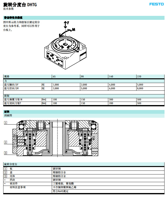 DHTG-65-2-A,DHTG-90-2-A,DHTG-140-2-A,DHTG-220-2-A,festo旋轉分度臺