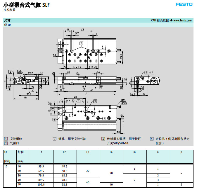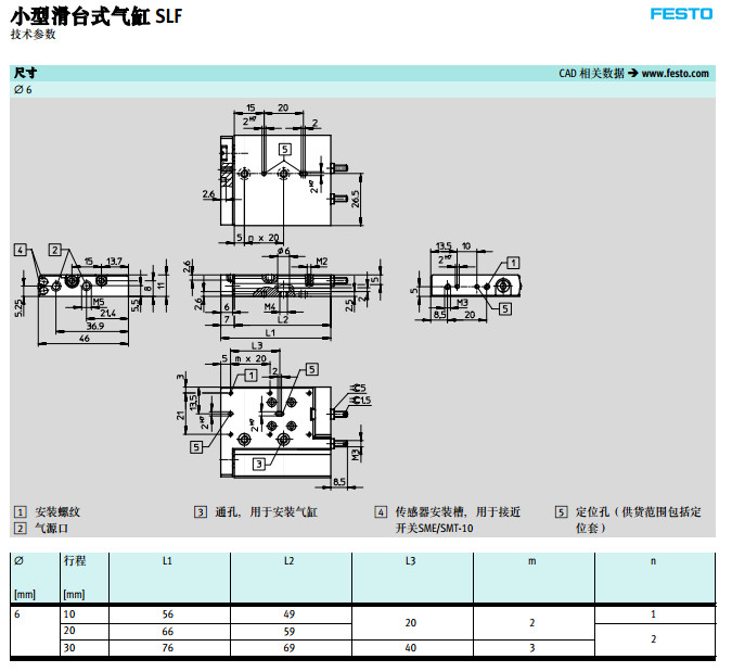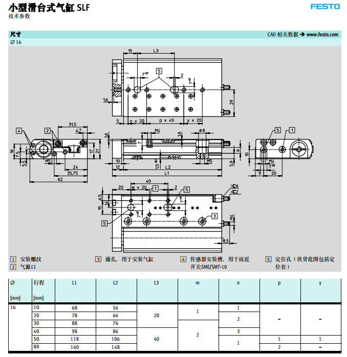 SLF-6-10,SLF-10-10,SLF-16-10,SLF-6-20,SLF-10-30,festo小型滑臺式氣缸