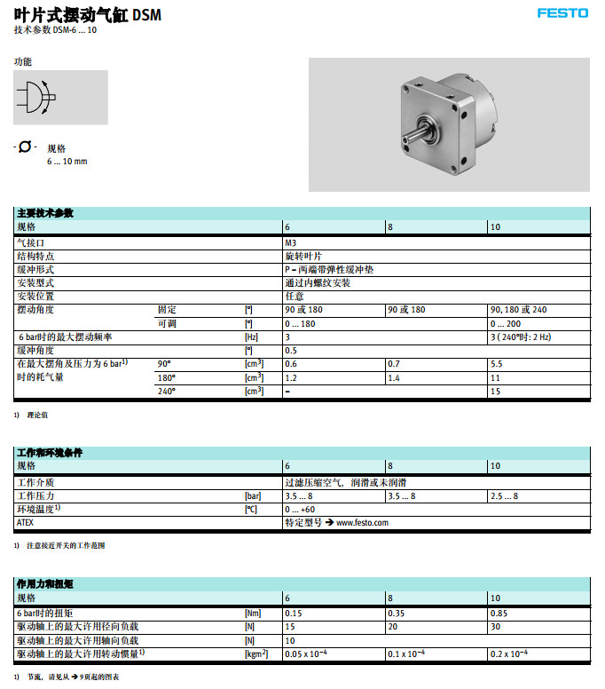 DSM-6-180-P,DSM-8-180-P,DSM-10-180-P,festo葉片式擺動氣缸