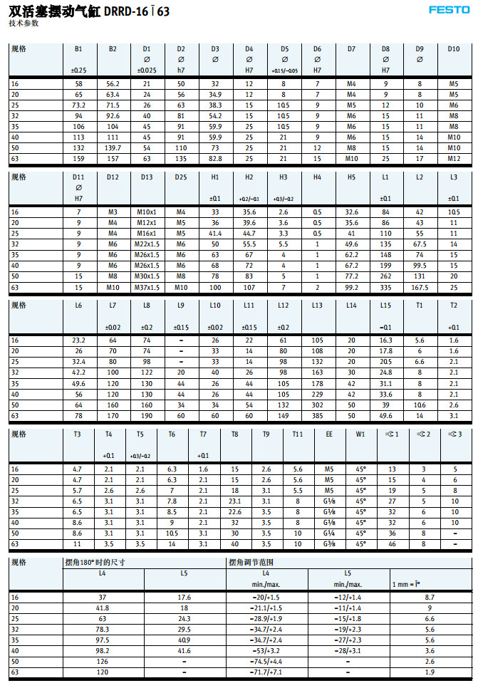 DRRD-16,DRRD-20,DRRD-25,DRRD-32,DRRD-40,DRRD-50,DRRD-63,festo擺動(dòng)氣缸