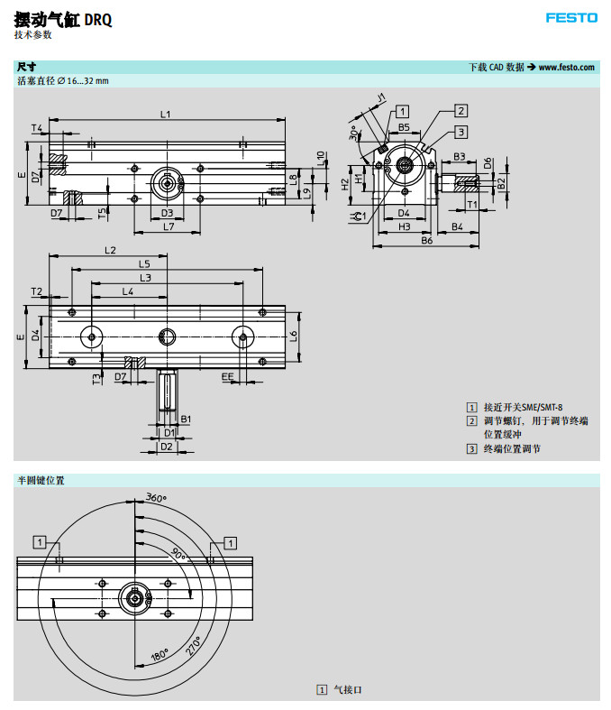 DRQ-16,DRQ-20,DRQ-25,DRQ-32,DRQ-40,DRQ-50,DRQ-63,festo擺動氣缸