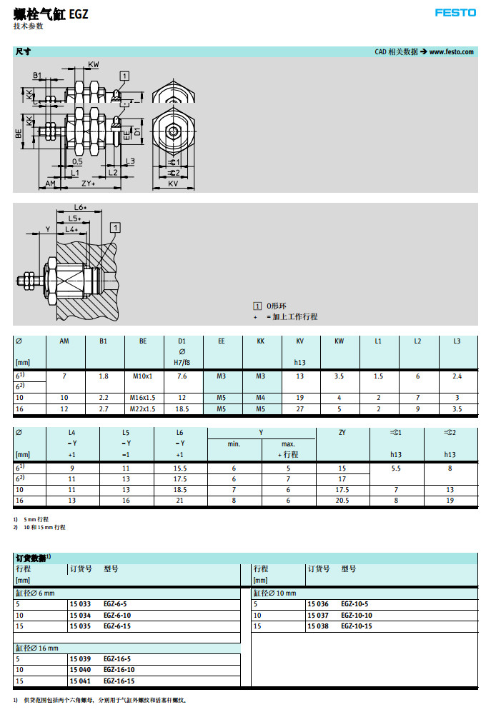 EGZ-6-5,EGZ-6-10,EGZ-6-15,EGZ-10-5,EGZ-16-10,EGZ-16-15,festo螺栓氣缸