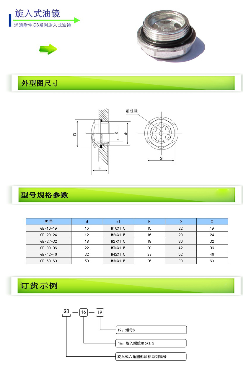 詳細信息 GB-16-19,GB-20-24,GB-27-32,GB-30-36,GB-42-46,GB-60-60,旋入式油鏡