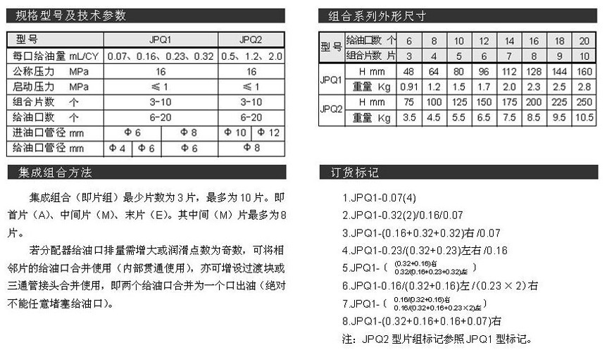 詳細信息 JPQ1,JPQ2,單線遞進式分配器