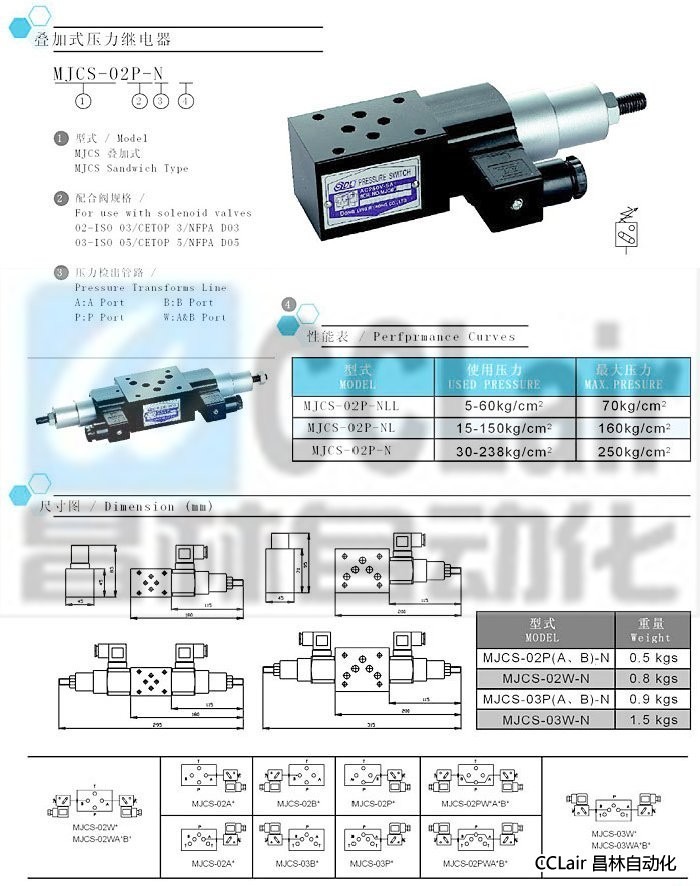 MJCS-03W-N,MJCS-02W-N,疊加式壓力繼電器