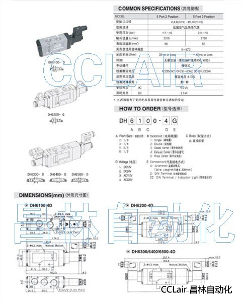 DH6100,DH6200,DH6300,DH6400,DH6500,5通先導(dǎo)型電磁閥