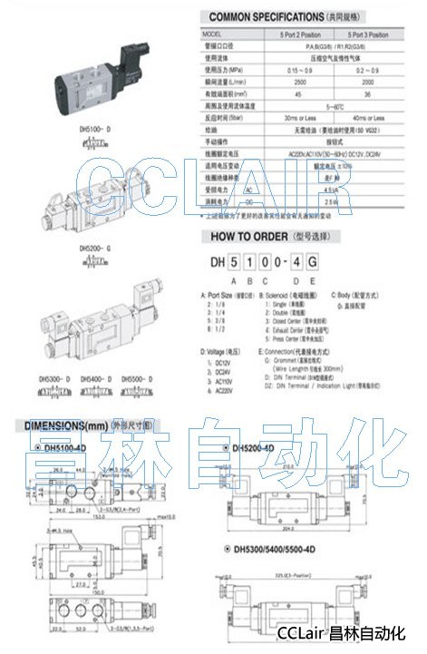 DH5100,DH5200,DH5300,DH5400,DH5500,5通先導型電磁閥