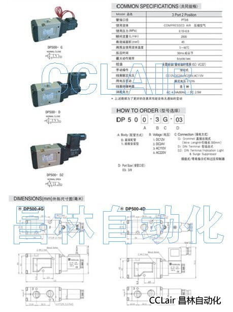 詳細(xì)信息 DP500-1G,DP500-2G,DP500-3G,DP500-4G,3通先導(dǎo)型電磁閥