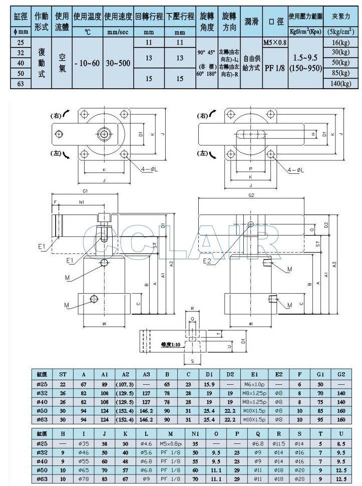 PSF-25,PSF-32S,PSF-40S,PSF-50S,PSF-63S,PSF-32D,PSF-40D,PSF-50D,轉(zhuǎn)角氣缸