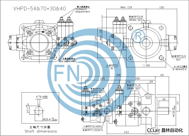 ◆2臺可變?nèi)萘咳~片幫浦連結(jié)成一體,以1臺電動馬達(dá)直接驅(qū)動之。從2臺可變?nèi)萘咳~片幫浦的吐出油量,可以個別供給各自的油路。以驅(qū)動作動器。亦可驅(qū)動同一作動器,其最大特長為同一軸可驅(qū)動兩個可變?nèi)萘咳~片幫浦節(jié)省空間,及同一回路內(nèi),可以很簡單地得到高低兩種壓力。