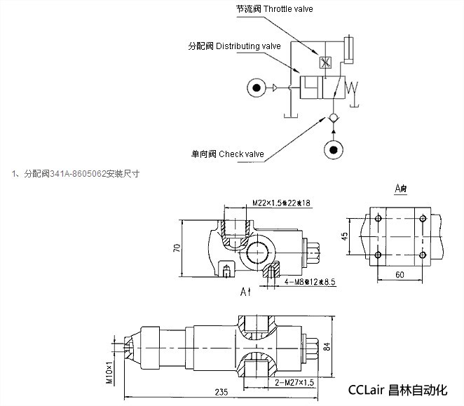 氣閥主要適用于載重汽車(chē)自動(dòng)裝卸系統(tǒng)。由于操作動(dòng)力采用氣源,使得閥的安裝和使用十分方便,并且具有不怕風(fēng)吹日曬和防爆的功能。氣閥還設(shè)置了一個(gè)節(jié)流閥,從而保證了車(chē)廂裝載的平穩(wěn)性。目前我廠主要生產(chǎn)五種型號(hào)的氣閥:341A,341B,342A,343A,343B。而每一種都有分配閥、單向閥、節(jié)流閥組成。