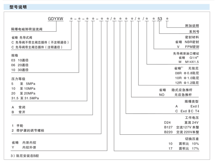GDYXWC-10-5A,GDYXWC-10-10A,GDYXWC-10-20A,GDYXWC-10-31.5A,GDYXWC-10-5A-1/10D24A/53 隔爆電磁卸荷溢流閥
