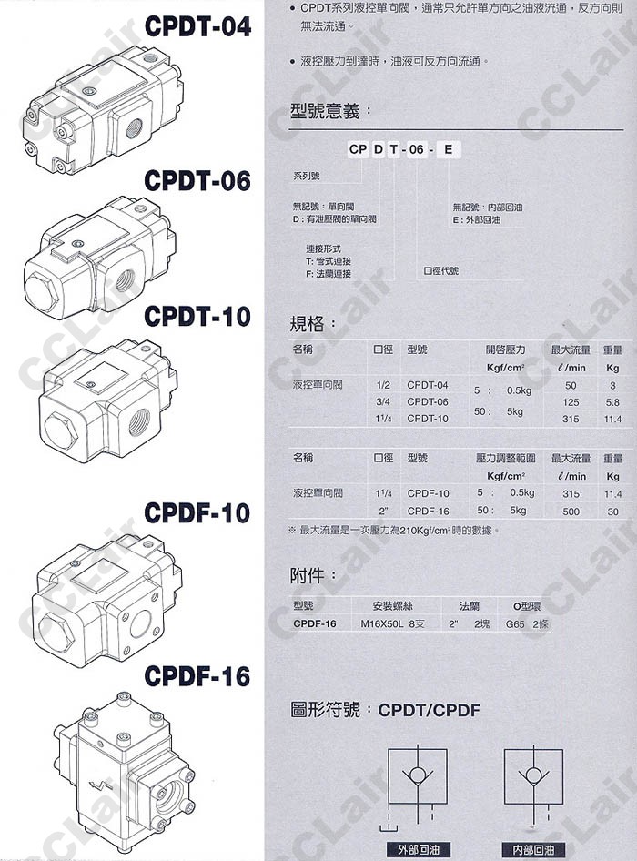 CPDT-04,CPDT-06,CPDT-10,CPDF-10,CPDF-16,CPDT-04-E,CPDT-06-E,CPDT-10-E,CPDF-10-E,CPDF-16-E,液控單向閥