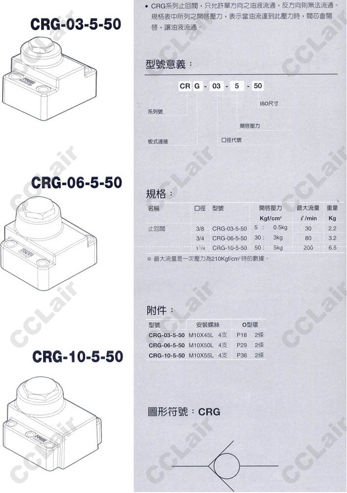 詳細(xì)信息 CRG-03-5-50,CRG-06-5-50,CRG-10-5-50,止回閥