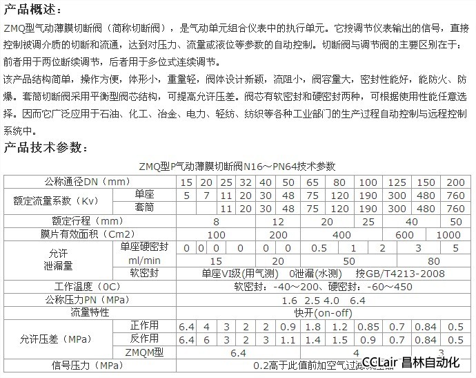 ZMQ-16,ZMQ-25,ZMQ-40,ZMQ-64,P氣動薄膜切斷閥